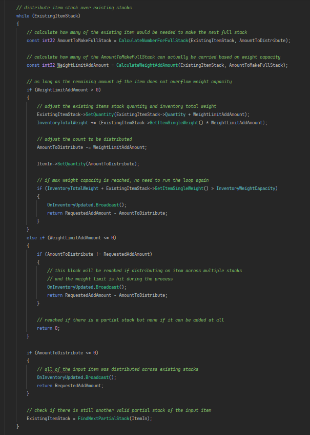 Then we check if the item we want to add already exists in the inventory and isnt a full stack.
